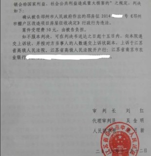 【案例索引】 (2016)苏03行初号 【原告】:任先生、李女士、刘女士 【代理拆迁律师】:北京京平律师事务所赵