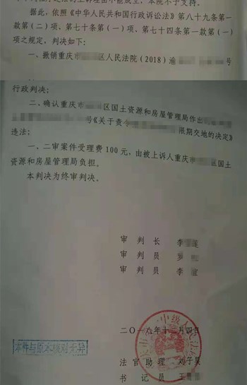 二、确认重庆市xx区国土资源和房屋管理局作出的xx号《限期交地的决定》违法。